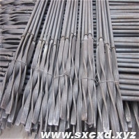 麻花錨桿分為兩種,一種是螺紋鋼麻花錨桿,就是在錨桿鋼的頭部擰一部分麻花,比普通麻花錨桿預緊力大,另一種是利用各種規(guī)格的圓鋼做成的,在圓鋼頭部做一段麻花。